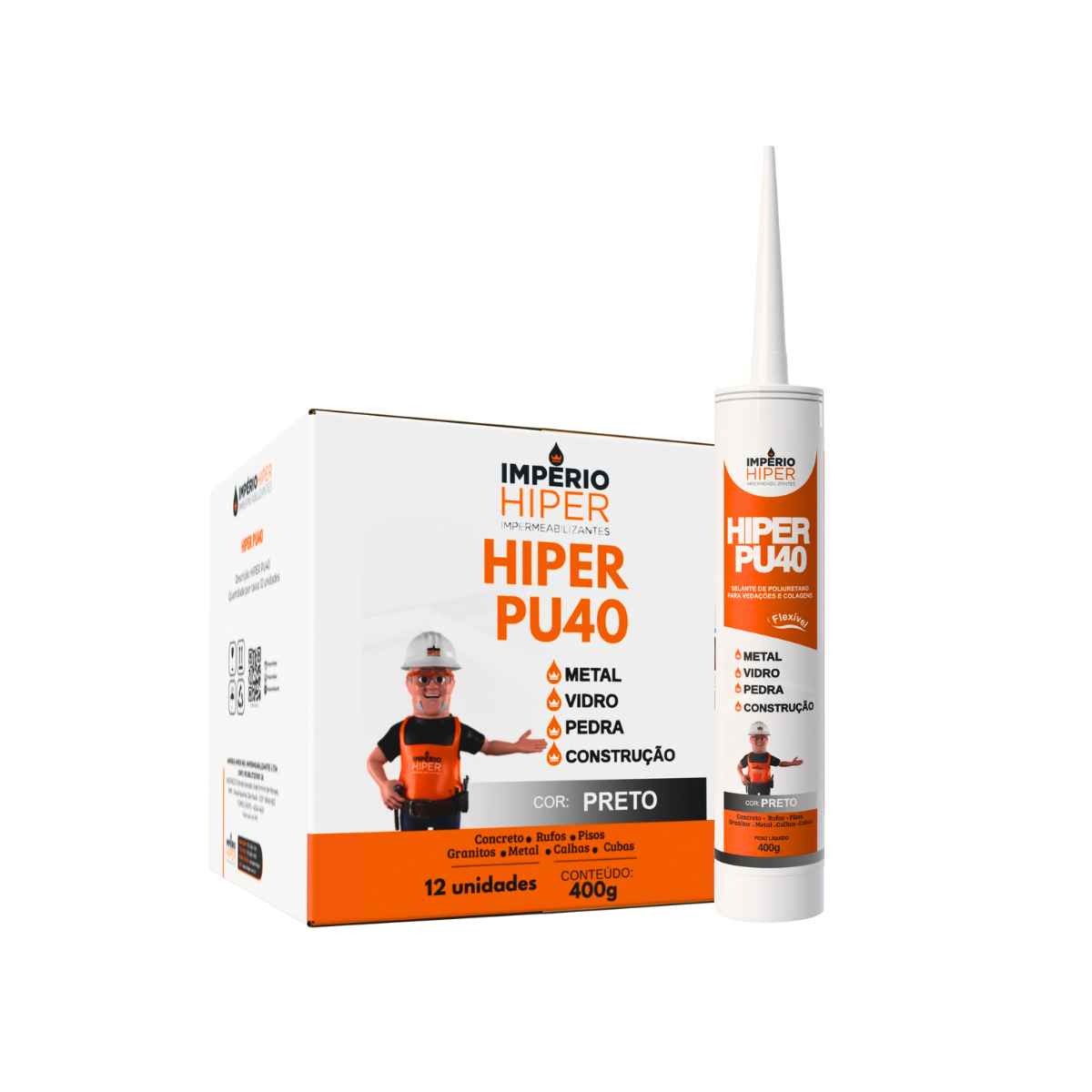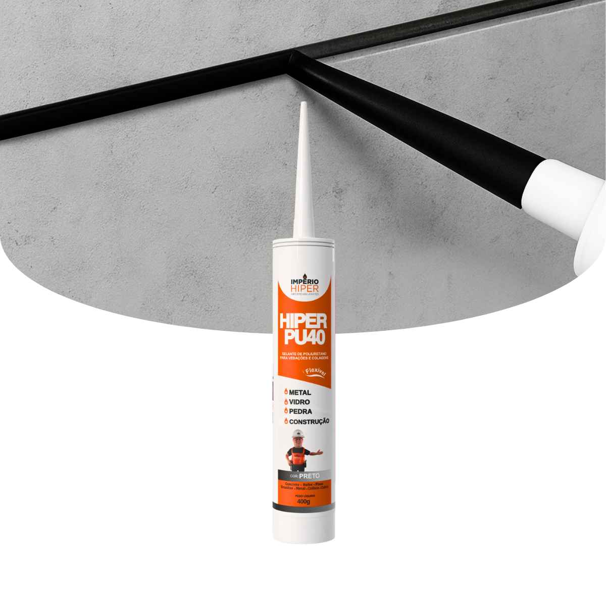 HIPER PU40 BRANCO, CINZA E PRETO é um selante híbrido à base de poliuretano monocomponente, isento de solventes, que cura com a umidade presente no ar, formando um elastômero altamente resistente. Oferece excelente aderência a uma ampla variedade de superfícies, sendo indicado para vedação de juntas e aplicações em áreas