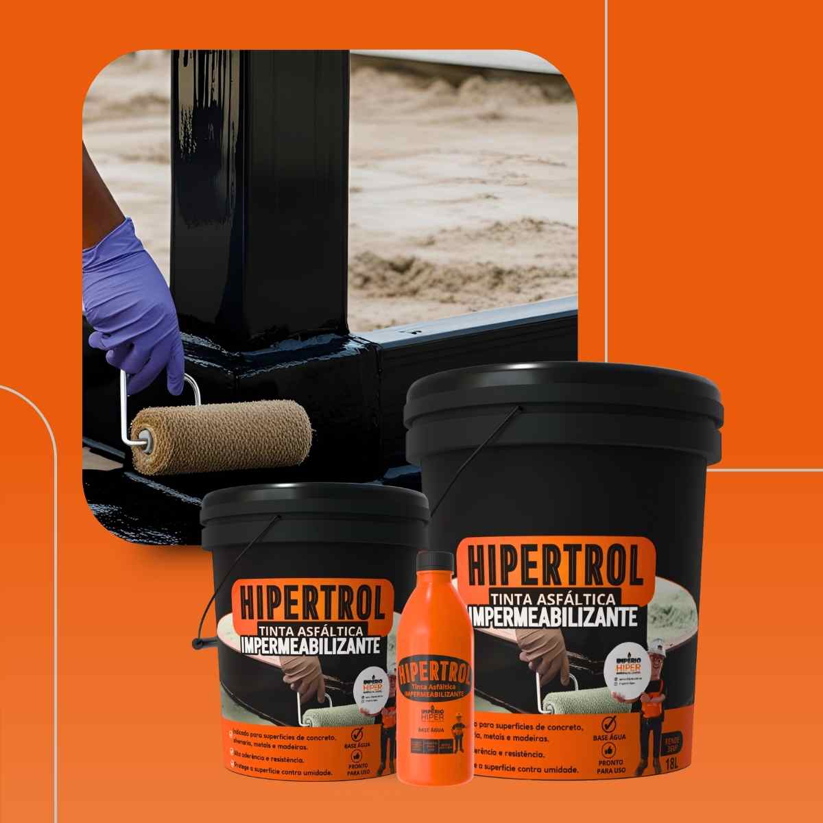 OBS: HIPERTROL não pode ser aplicado em Reservatório de água potável. Para aplicação em metais a ferrugem deve estar totalmente removida. É recomendável a leitura da ficha.